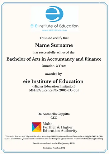 The European Institute of Education is a Higher Education Institution established in 2000 in Malta, European Union. It is licensed by the Malta Further & Higher Education Authority (Licence No: 2005-TC-001). eie offers qualifications (EQF Levels 5-7) which blend with the flexibility and versatility that most people require in their busy lives.