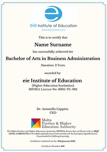 The European Institute of Education is a Higher Education Institution established in 2000 in Malta, European Union. It is licensed by the Malta Further & Higher Education Authority (Licence No: 2005-TC-001). eie offers qualifications (EQF Levels 5-7) which blend with the flexibility and versatility that most people require in their busy lives.