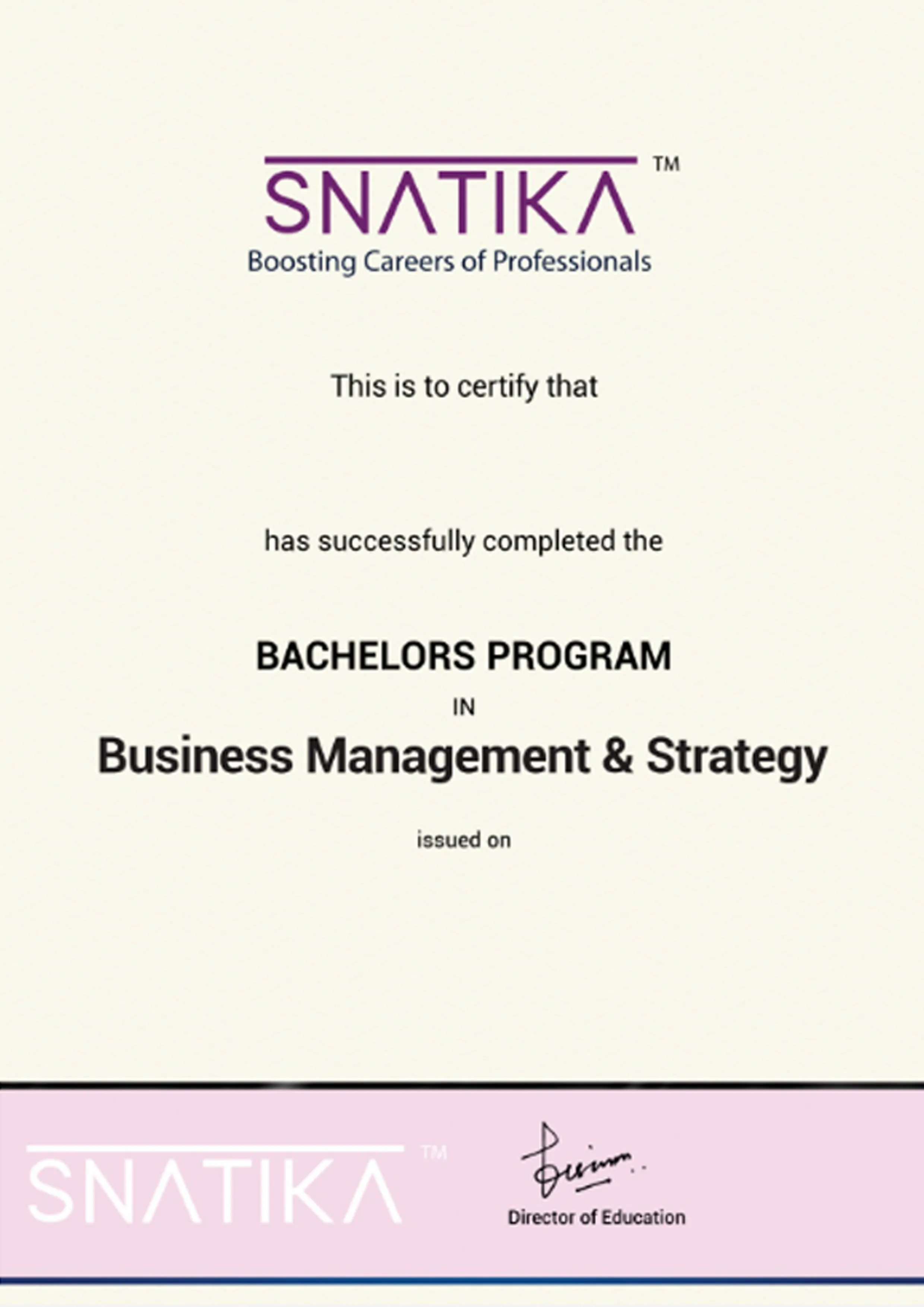 SNATIKA only provides a course completion certificate (which means you have completed the program) and doesn’t award a Degree/Diploma.