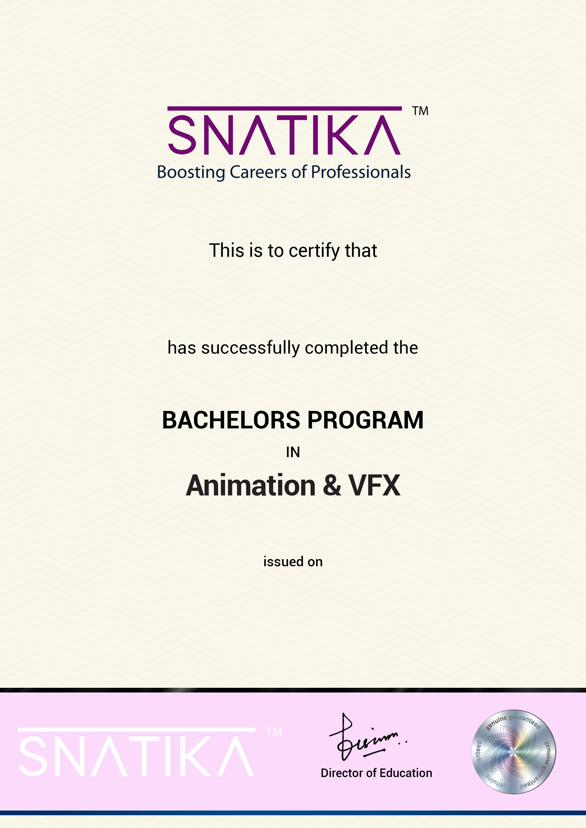 SNATIKA only provides a course completion certificate (which means you have successfully completed the program) and doesn’t award a Degree/Diploma.