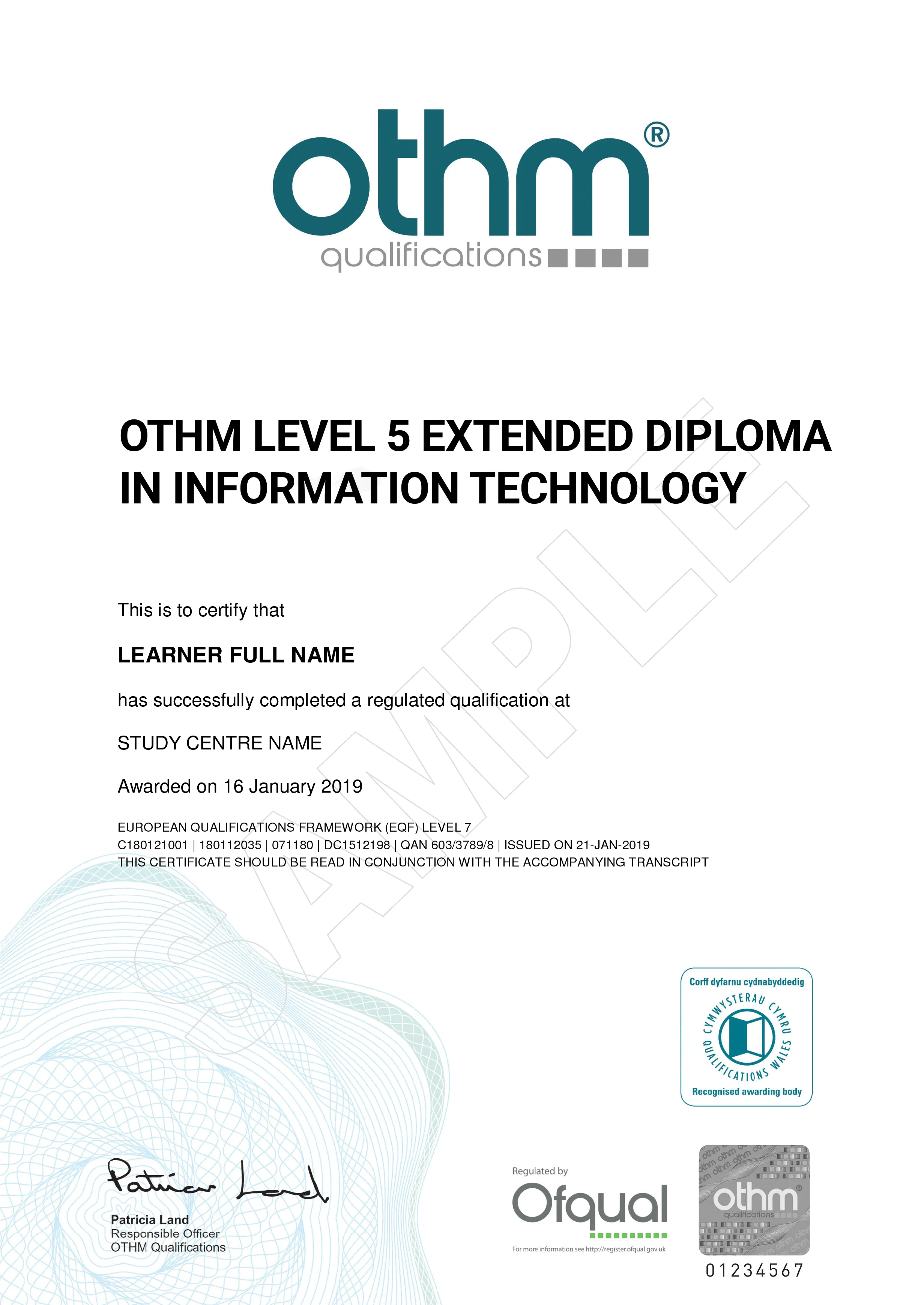 OTHM is approved and regulated by Ofqual (Office of the Qualifications and Examinations Regulation). The Register of Regulated Qualifications Framework can be found at https://register.ofqual.gov.uk . OTHM is an awarding body and not a university. OTHM only awards diplomas and not degrees.