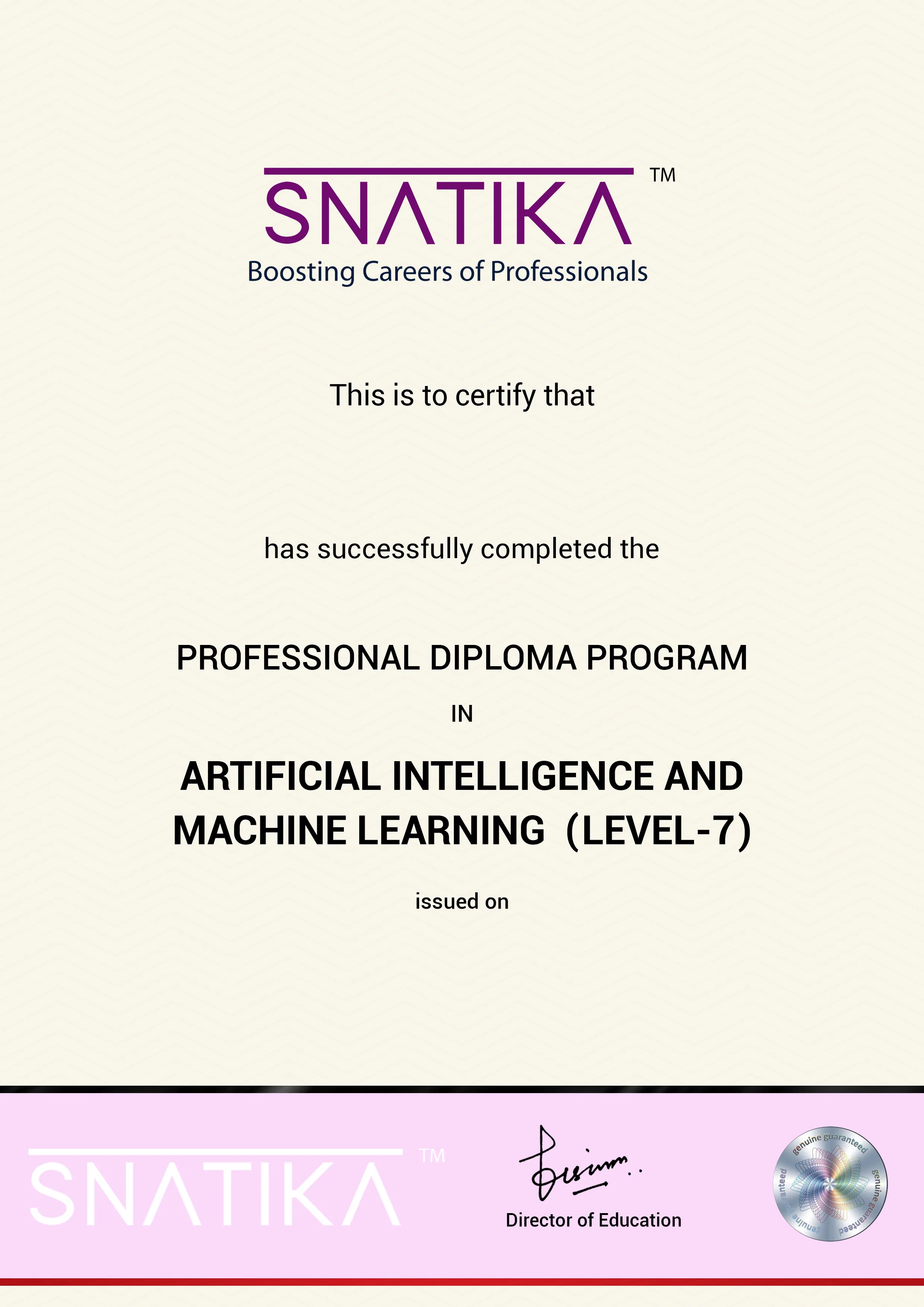SNATIKA only provides a course completion certificate (which means you have successfully completed the program) and doesn’t award a Degree/Diploma.
