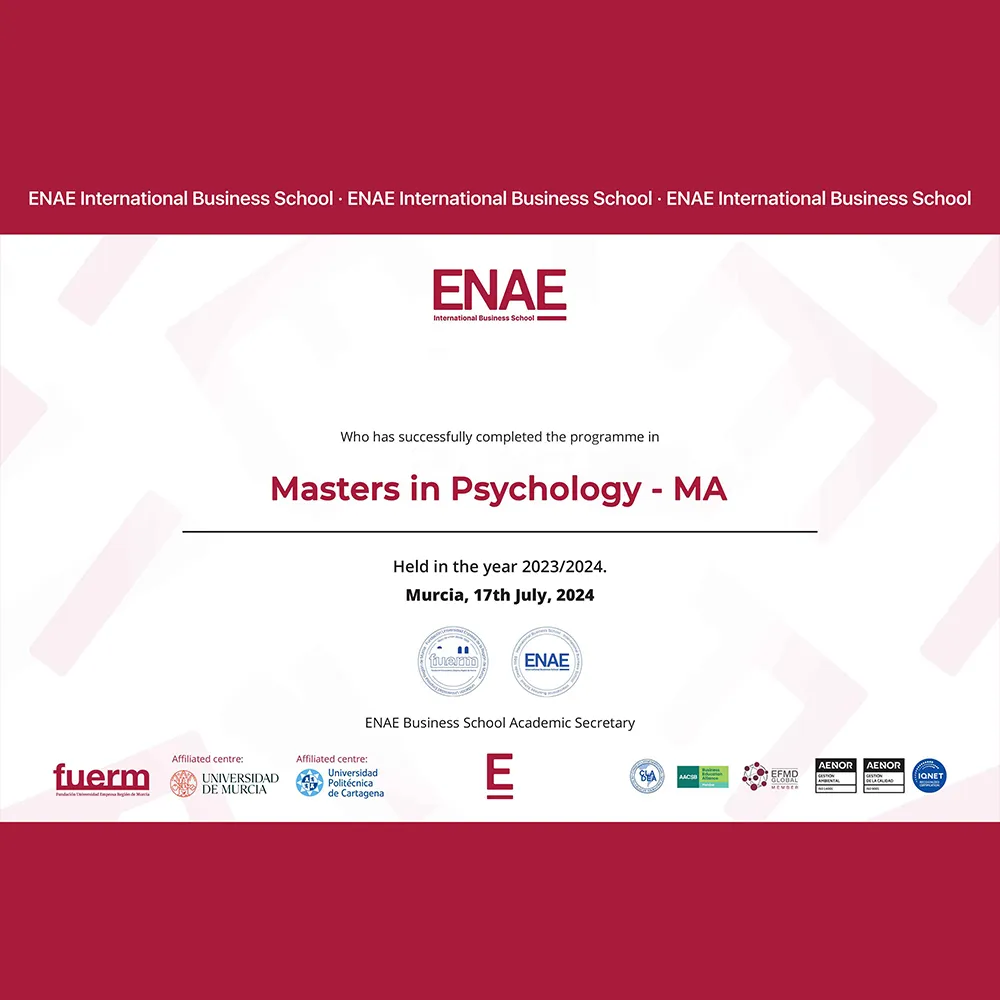 ENAE Business School is a private, for-profit teaching university in Spain. It offers a variety of undergraduate and postgraduate programs with both blended and online distance learning delivery options. Its head office is in Murcia, Spain and is ranked #35 in QS International Trade Ranking - Masters and MBA 2024. SNATIKA learners are awarded MBA, MSc, MA, BSc, and BA degrees from ENAE Business School.