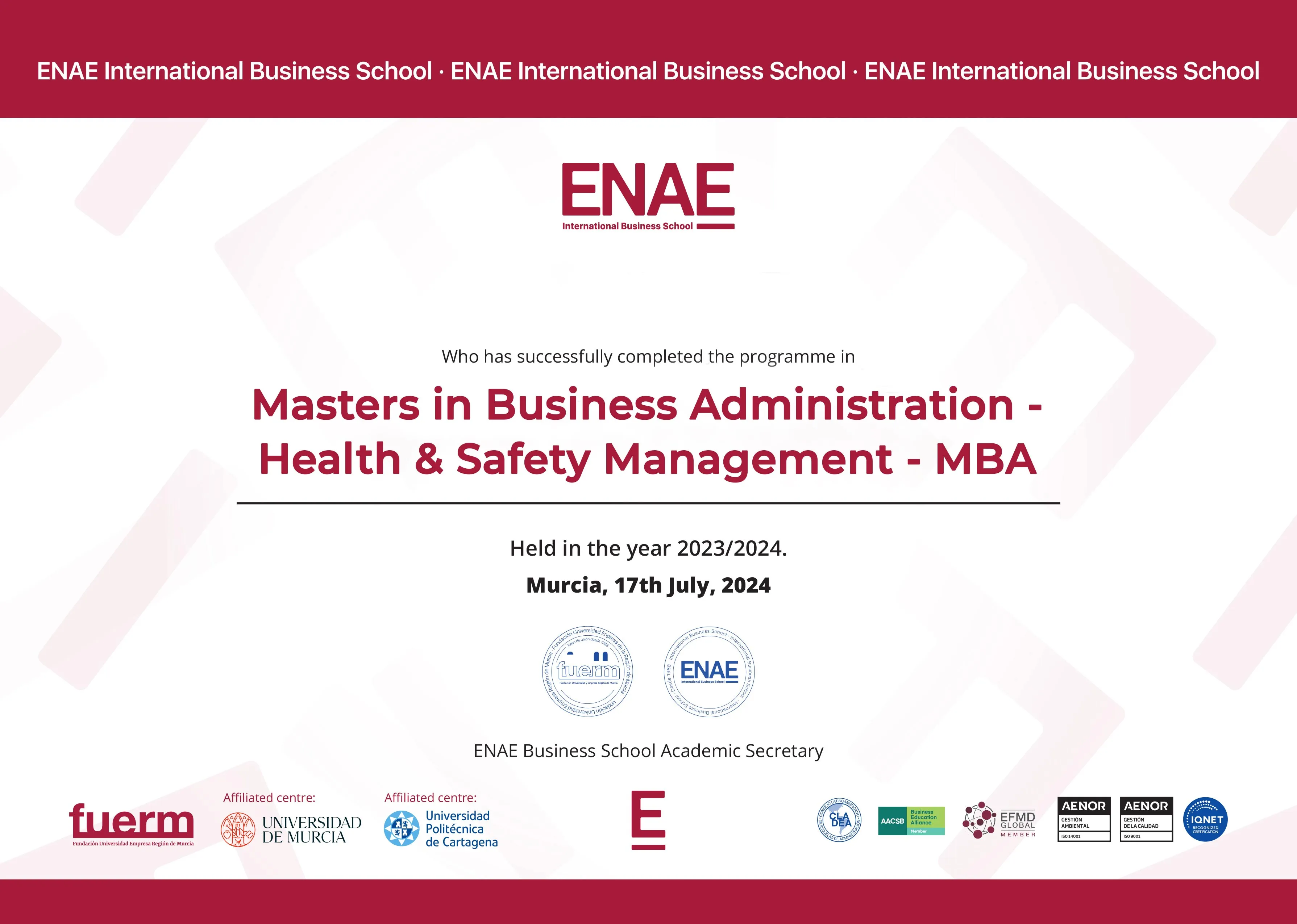 SNATIKA learners are awarded MBA, MSc, MA, BSc, and BA degrees from ENAE Business School.