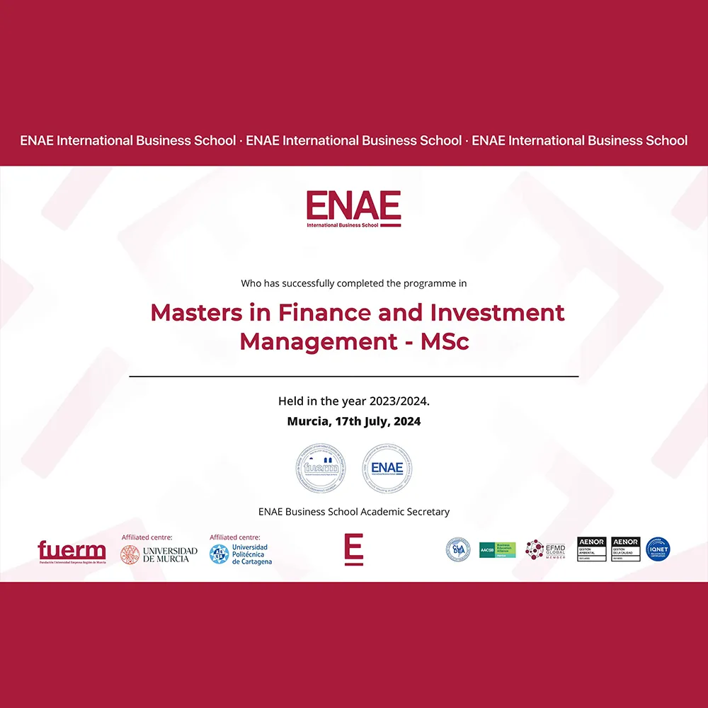 ENAE Business School is a private, for-profit teaching university in Spain. It offers a variety of undergraduate and postgraduate programs with both blended and online distance learning delivery options. Its head office is in Murcia, Spain and is ranked #35 in QS International Trade Ranking - Masters and MBA 2024.