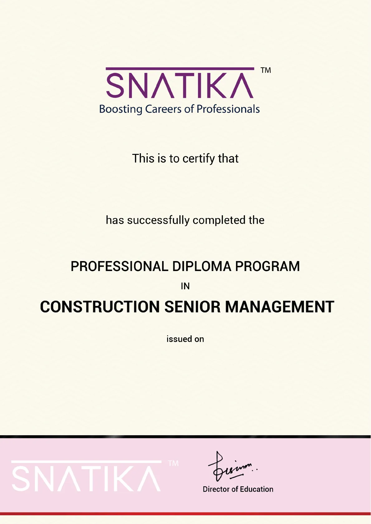 SNATIKA only provides a course completion certificate (which means you have successfully completed the program) and doesn’t award a Degree/Diploma.