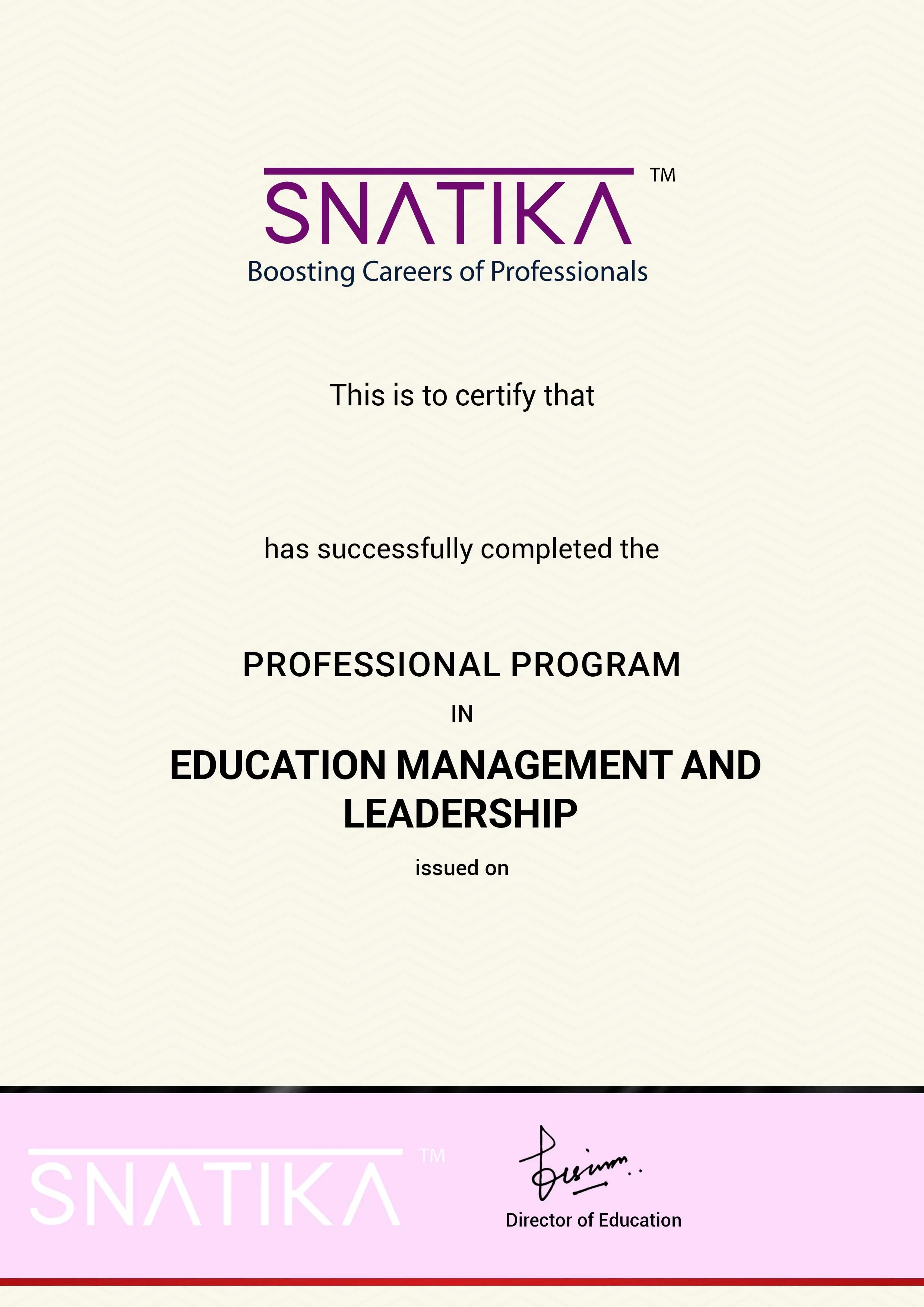 The Professional programs are offered only in a particular discipline, which means that they will only deal with one main subject or specialisation in business. So, professional programs are the perfect choice for those professionals who have gained considerable knowledge in their domain and now have a certificate to prove it. At SNATIKA, we offer specialisation across varied fields to cater to our senior professionals who have excelled in their specific fields and would like to further grow in the same.